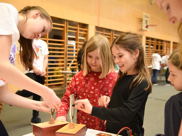 Neben der Mithilfe bei der Veranstaltungsorganisation durch Mag. Martin Wastlbauer wurden auch drei Experimentierstände von unserem EXE-Team, bestehend aus Schülerinnen und Schülern der 3. und 4. Klassen, betreut. Insgesamt wurden für diesen Tag 28 Experimentierstände von ca. 200 Schülerinnen und Schülern aus allen Schulen des Bezirks vorbereitet. Mit ca. 1200 Gästen war diese naturwissenschaftliche Experimentalmesse auch heuer wieder ein voller Erfolg und das Experimentieren machte unseren Gästen sichtlich Spaß! Als Andenken an diese Veranstaltung gab es zum Abschluss noch eine Spektralbrille mit auf den Heimweg.